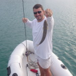 We think that’s an inshore lizard fish – those little guys get thrown back but we have our eye on a big trigger fish that hangs out under our boat though…