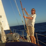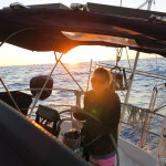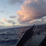 We had only been underway for a few miles when our auto helm started to struggle. Following seas are the most challenging for Otto and we probably started out with rolling five footers and 20 knots blowing from behind us. We made several adjustments, and then had to make the decision as a crew whether or not to hand steer our 840 mile passage south. Challenge accepted. With three crew, we could do three hour watches and then rest up for 6 hours…which sounded reasonable to us. So I took the helm and off we went. For the first three days, we pretty much slept when we weren’t on watch. Handsteering a sailboat downwind is similar to driving a car when the power steering goes out. With every wave you have to pull the helm back to coarse. Great workout, but by the end of the three hour watch, your arms feel a little bit like jello.