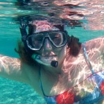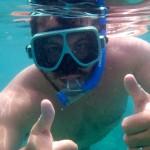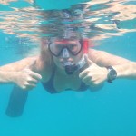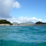 The next morning we set off for Leinster Bay – another spot on the north coast of St. John which boasted some of the best snorkeling off of Waterlemon Cay – not to be confused with WaterMELON Cay :). Instead of motoring upwind, we decided to sail around Great Thatch. Ten miles, no big deal…until we hit a squall with a gust to 32 knots!!! This was our first real sail with my mom and we were cookin’! Luckily Logan and I kept our cool and Stella sailed like a pro. I eased the main with the gusts and Logan fell off the wind a bit to keep the ride as comfortable as possible. Lots of active sailing, but we were all having a blast – even Mom! She propped herself up on the high side and held on for the ride. When the wind let up a bit, we tacked and headed to our next piece of paradise where the snorkeling really was fantastic and the sea turtles were popping their heads up everywhere.