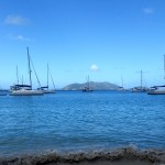 Getting off the dock is always…a challenge. But with the help of our neighbor Eddie and our friend on the dock, we made it out relatively smoothly and set our course for Maho Bay in St. John. Baxter and Molly recommended Maho because it was super protected. It also has a ton of mooring balls so I felt confident that we could find a place to stay even though we were leaving later in the afternoon. This would be a great place to get our feet wet and get my mom comfortable on Stella Blue. This was our first non-sailor we’ve had stay with us, so we all had some things to learn. It took me months to get used to the boat life…it only took my mom a day! Now it was time to go play. Most of St. John is a national park which makes for some great snorkeling and pristine beaches. Before we headed off to our next bay we decided to take a cab into Cruz Bay (the biggest town on the island) to check out the shopping and see some people. Everything was groovy – we found $1 beers! – until we tried to get back to Maho. Our cab ride back was death defying, seriously. As we went up mountains, the bald tires skidded on the wet roads. The engine died half way up the second mountain and we all gripped the seats with white knuckles while the driver got us moving again. It was dark, it was rainy, it was just plain terrifying. We made it back to Stella alive and hungry for spaghetti.
